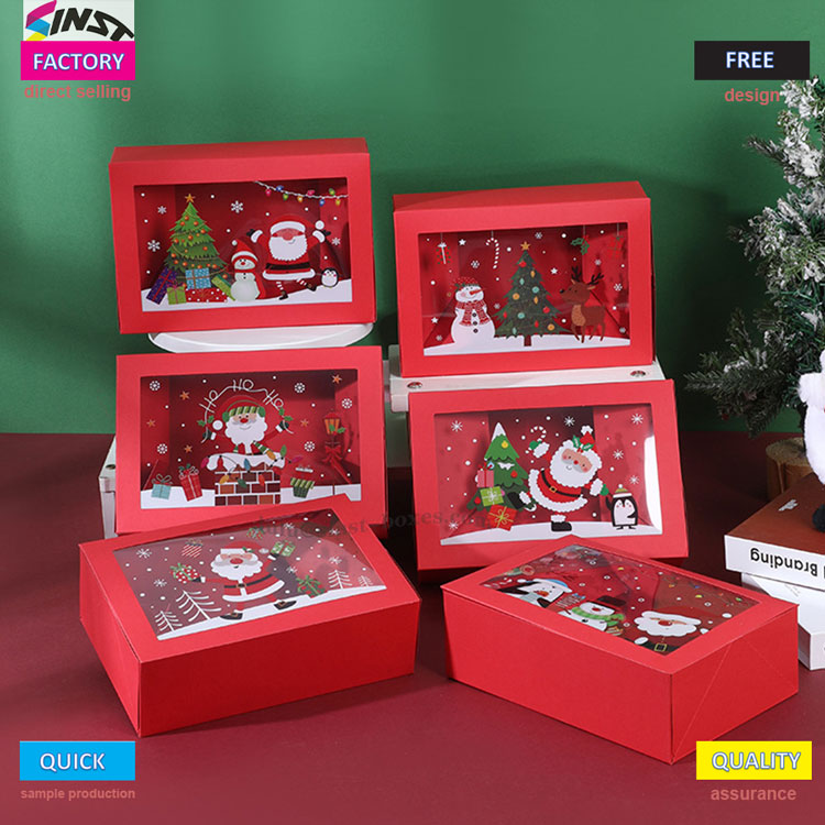 Ang Christmas candy box na ito ay tunay na isang tool ng cheat na may maligaya na kapaligiran! Ang maliwanag na pulang kahon ng katawan ay partikular na umaakma sa buhay na buhay ng Pasko. Sa sandaling mabuksan ang transparent window sa gitna, ang nakalimbag na Santa Claus, Christmas tree, at round snowman sa loob ay ipinahayag, at ang maliit na mga detalye ng mga snowflake at makulay na ilaw ay mukhang mainit -init.