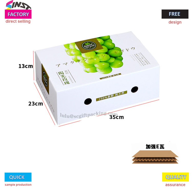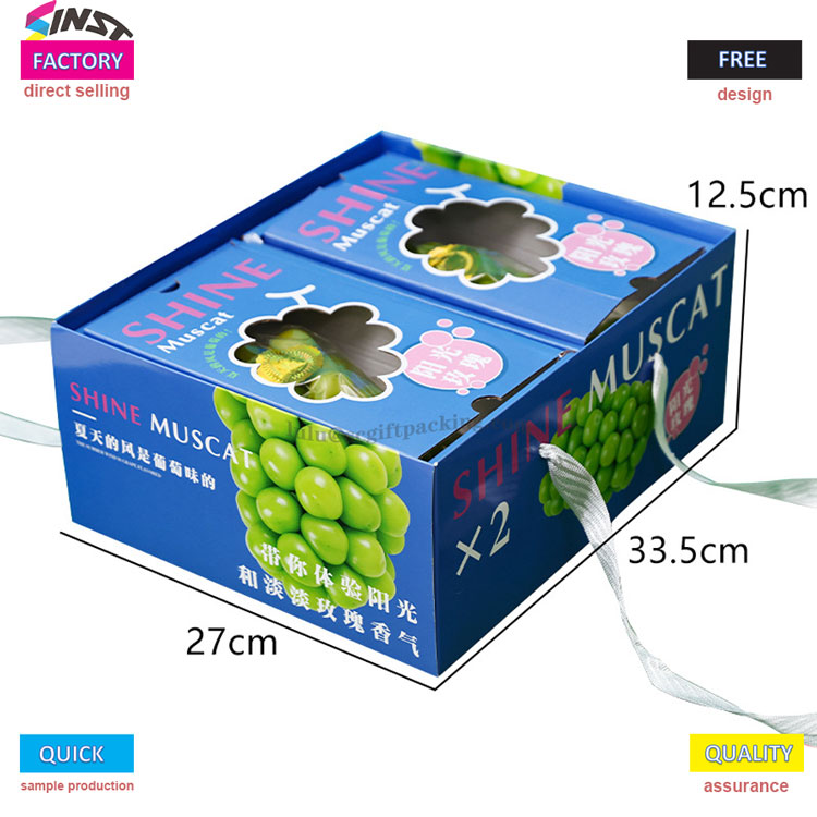 Bilang mapagkukunan ng pabrika ng packaging, inilunsad ng SINST ang mga tukoy na kahon ng packaging ng ubas sa maraming laki at kulay, na angkop para sa e-commerce, regalo, at sariwang merkado ng pagkain! Ang pangunahing katawan ay gawa sa pinalakas na materyal na e-tile (lumalaban sa presyon at pagbagsak), na nagbibigay ng mga klasikong scheme ng kulay tulad ng berde, asul, at puti, na ipinares sa mga slogan na batay sa senaryo tulad ng "Sunshine Rose" at "Summer Wind Is Grape Flavor". Ang transparent window/hand-held strap design intuitively ay nagpapakita ng pagiging bago ng mga ubas, na ginagawa itong isang portable at eye-catching "maraming nalalaman pagpipilian" para sa Grape Gift Box Packaging!