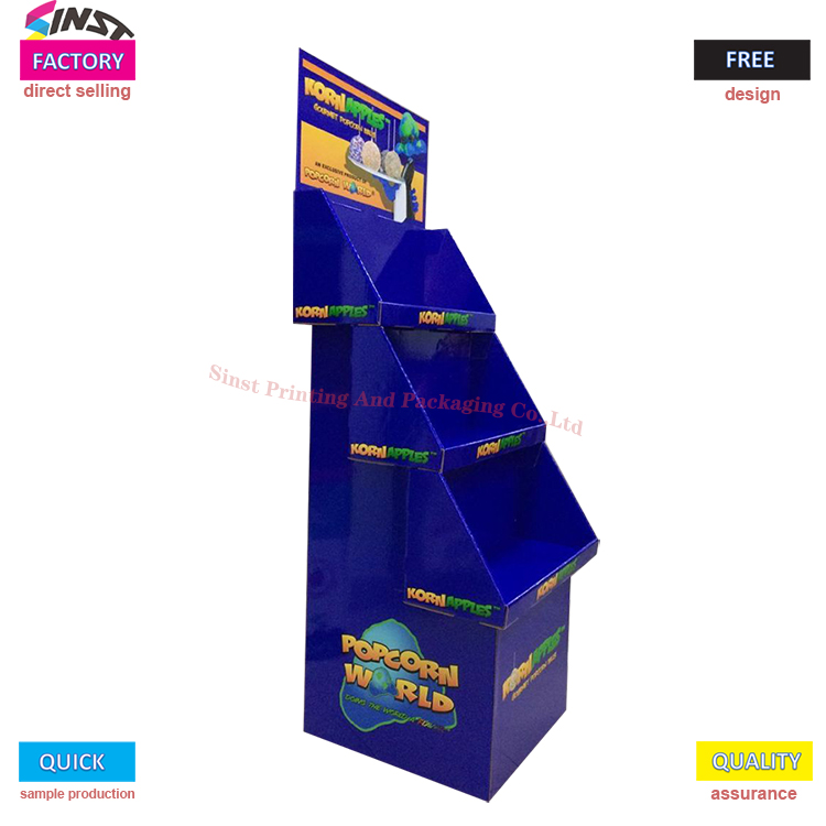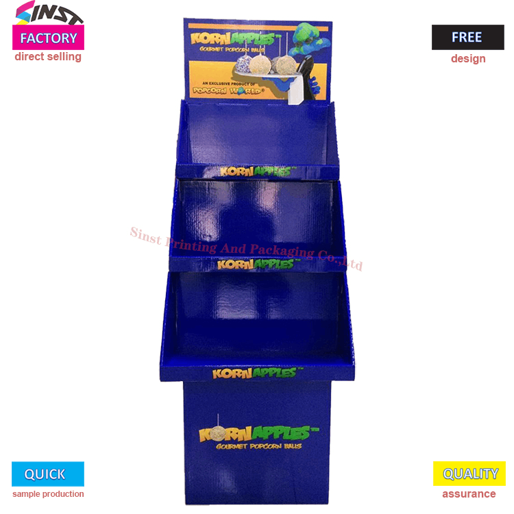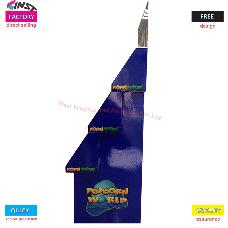 Ang Sinst ay isang propesyonal na Snack corrugated floor layer display stand para sa handmade popcorn manufacturer at supplier sa China. Maaaring i-customize ang mga detalye, laki at pattern. Ang aming mga produkto ay may kumpletong mga detalye, makatwirang disenyo, at mga compact na istruktura ng produkto. Ang materyal ng corrugated cardboard ay ligtas, environment friendly at recyclable.