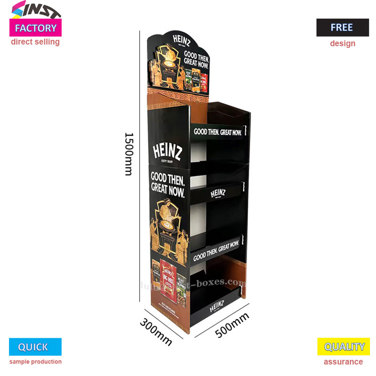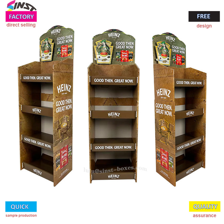 Ang rack na display ng tomato sauce na ito ay isang "maliit na katulong" para sa mga supermarket at mga tindahan ng kaginhawaan upang ipakita ang sarsa. Ito ay kabilang sa isang uri ng sarsa ng display ng sarsa, na gawa sa rack ng display ng papel ng karton, na magaan at madaling dalhin. Maaari itong magamit sa sandaling ito ay na -unpack at inilagay sa counter. Ang istante ay nahahati sa apat na mga layer, ang bawat layer ay maaaring humawak ng dalawang hilera ng mga bote ng sarsa ng kamatis, at maaari ring magkaroon ng ilang salad dressing at matamis at maanghang na sarsa na pinalamanan sa tabi nito - tinatawag itong "kamatis na sarsa ng display na istante", ngunit maaari rin itong magamit bilang isang istante ng sarsa. Ito ay angkop na ilagay ito sa lugar ng panimpla ng isang maliit na supermarket.