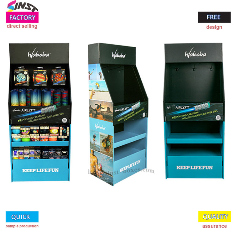 Ang pangunahing katawan ng panindigan ng laruan ng laruan ng mga bata ay asul-berde na may mga guhit ng mga eksena sa paglalaro ng character, at ang slogan na "Panatilihing masaya ang buhay" sa ilalim ay nagbibigay ng pangunahing konsepto ng "pagkakaroon ng kasiyahan". Ipares sa isang bukas na layered na disenyo, ang mga bata ay agad na naaakit ng eksena at madaling gumuhit at subukan ang mga glider at frisbees; Madali na makilala ng mga magulang ang "laruang ito ay maaaring magdala ng kaligayahan" sa pamamagitan ng pagbabasa ng mga slogan at pagkilala sa mga tatak.