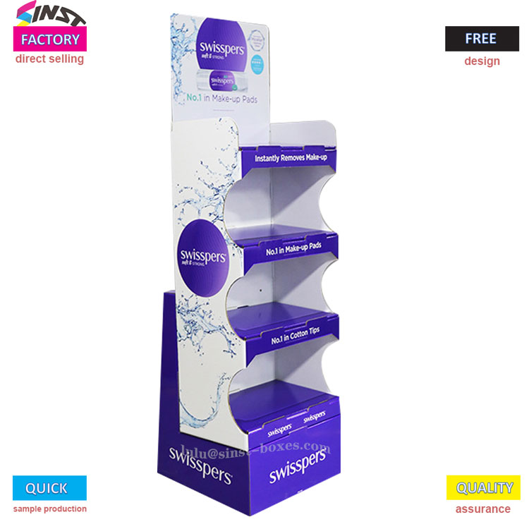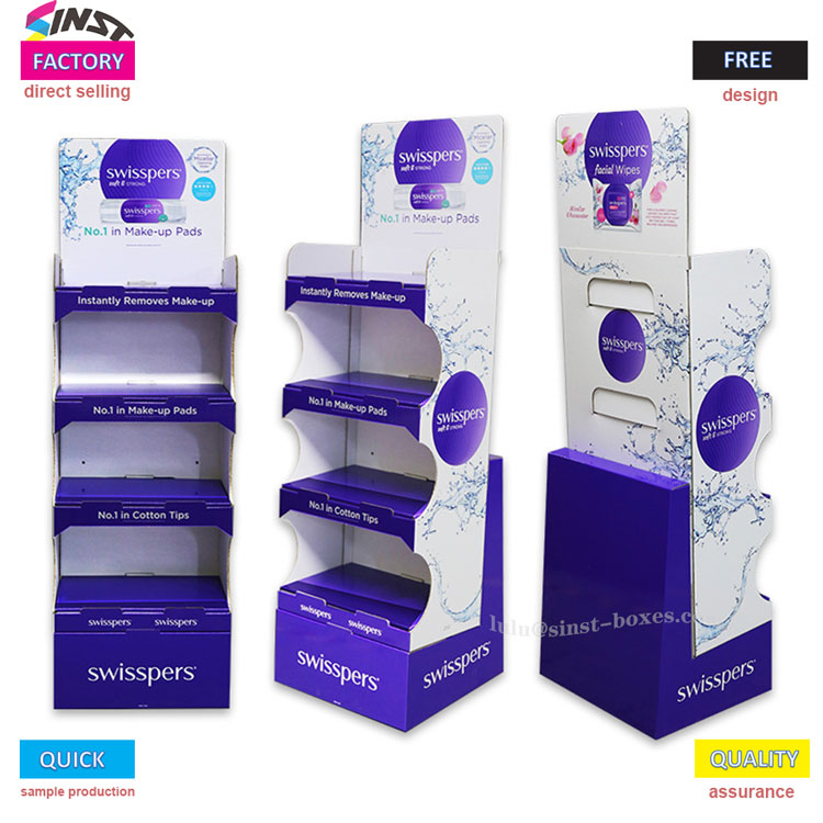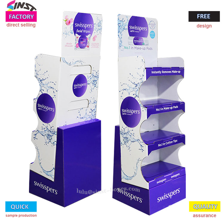 Ang wet wipe display rack ay dinisenyo na may maraming mga layer, bawat isa ay may mga grooves upang ligtas na hawakan ang mga maliliit na item tulad ng mga basa na wipes at cotton swabs, na ginagawang madali itong ma -access. Ang materyal ay karton, na kung saan ay magaan at madaling ayusin, at maginhawa din ito upang i -restock. Ito ay kabilang sa uri ng tool ng pagpapakita na mukhang simple at nakatayo nang matatag kapag ginamit.