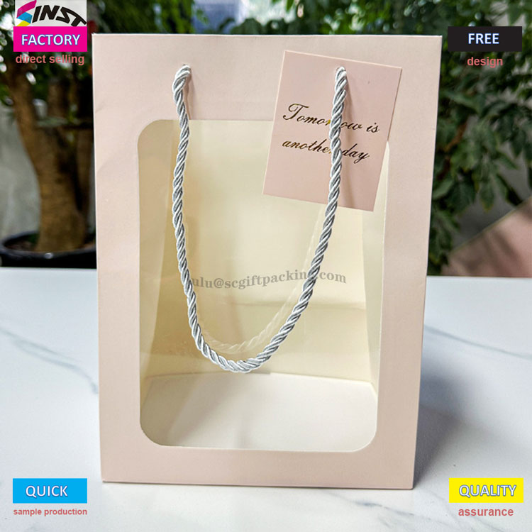 Ang bag na ito ng tote ng bulaklak ay perpektong pinagsasama ang mga estetika at pagiging praktiko. Pinapayagan ng transparent na disenyo ng window para sa intuitive na pagtatanghal ng mga regalo, na lumilikha ng isang biswal na nakakaakit na karanasan para sa mga customer, na nagpapahintulot sa kanila na mas tumpak na piliin ang mga item na kailangan nila. Nagtatampok ang window bouquet tote bag ng isang nababalot na tatlong-strand na hawakan sa tuktok para sa madaling pagdala, at maaaring maalis upang mapaunlakan ang iba pang mga item. Ito ay isang perpektong paraan upang mapahusay ang estilo ng iba't ibang mga item, kabilang ang mga item sa kultura at malikhaing, mga produktong pampaganda, at packaging ng dessert! Tangkilikin ang isang 10% na diskwento sa mga order na higit sa 10,000 piraso, na gumagawa ng mga pagbili ng bulk na isang mahusay na bargain. Ito ay perpekto para sa pag -akit ng pansin sa panahon ng marketing sa holiday o para sa pang -araw -araw na benta.